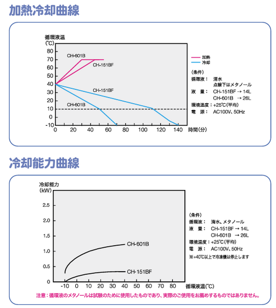 ※1:+7℃以下にて使用される場合は必ず不凍液を使用してください。なお、循環液温が+40℃以上の時、冷凍機は停止します。