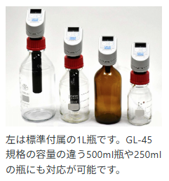 | ふらん瓶容量/架数 | 500mL(専用遮光瓶)×6本 | 1L(GL-45のねじ口瓶)×6本 |